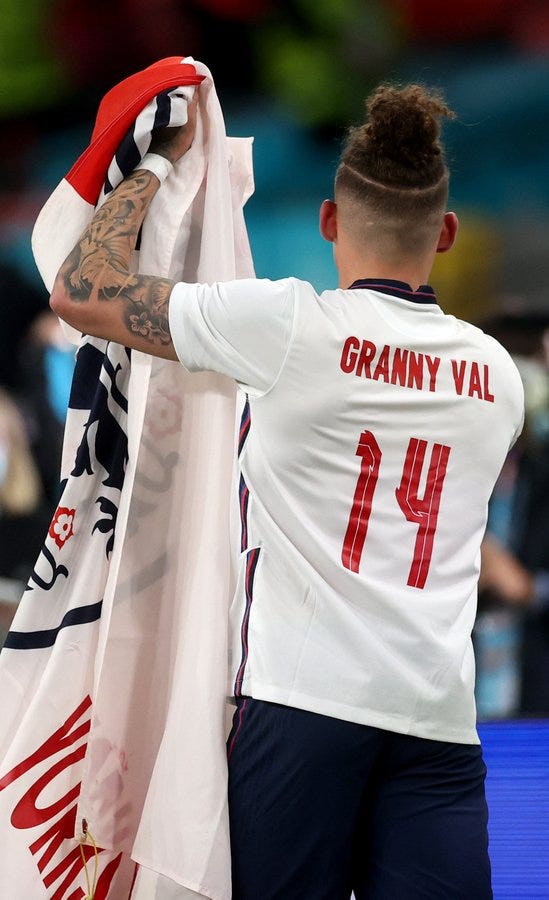 At the same time he’s also a man that talks openly and with earnest tenderness about his beloved Granny Val, who passed away not long before the Euros, and reflects on his grief attached to her passing with a complete absence of machismo.